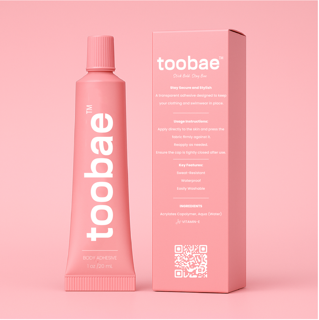 TooBae™ is your secret confidence glue, packed with Vitamin E to keep outfits flawless and secure all day. It’s sweatproof, waterproof, and washes off easily – so you can slay confidently and stay bae, always. ✨
